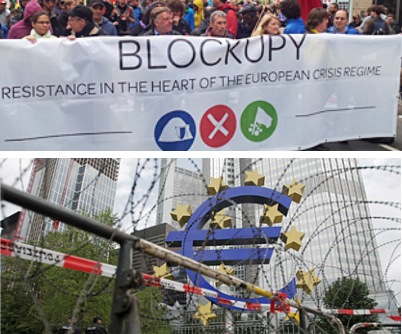LinkAnmerkung: Am Freitag Abend besuchte ich eine Veranstaltung in Frankfurt. Auf dem Weg zu Fuß vom Parkplatz zur 'Alten Oper' war starke Polizeipräsenz zu sehen. Das Deutsche-Bank-Hochhaus war vollständig abgeriegelt. Weit und Breit nur Polizei. Ein Grund dafür war nicht erkennbar. Der Rückweg führte gegen 23 Uhr am Willi-Brandt-Platz vorbei. Auch dieser Platz war vollständig mit Absperrgittern umstellt. Aus dem Auto heraus konnte ich sehen, wie Polizisten damit beschäftigt waren, Stacheldrahtrollen über den Absperrgittern anzubringen. Wenn ich heute aus den Nachrichten erfahre, dass genau an diesem, am Vortag als Menschenfalle gut präparierten Platz, ca. 400 - 1000 Menschen eingekesselt und bis zu 10 Stunden festgehalten wurden (sogar die Toilettenhäuschen waren schon gerichtet), weil Demo-Teilnehmer angeblich gewalttätig gewesen sein sollen, dann schreit dies nicht nur so zum Himmel, sondern stinkt auch gewaltig nach behördlicher Willkür, SA-Methoden und Obrigkeitsstaat mit Weißem Terror schwarzer Politgangster. Wahrscheinlich waren die Provokateure, die an der richtigen Stelle einen bengalischen Feuerwerkskörper zündeten, auch von der Polizei. Stuttgart 21 lässt grüßen. Am Tag danach (Nachtrag): 02.06.2013 [Quelle: hr-online.de] Nach Blockupy-Demo - Parteien streiten über Polizeieinsatz Die politische Debatte um den Polizeieinsatz bei der Blockupy-Großdemo in Frankfurt hat begonnen: Die Landtags-CDU lobt das Sicherheitskonzept, die SPD fragt nach der Verhältnismäßigkeit, die Grünen fordern eine Stellungnahme von Innenminister Boris Rhein (CDU). [..] Am Sonntag bilanzierte die Polizei: Die Blockupy-Organisatoren hätten Vorschläge zur Fortsetzung der Demonstration ohne die mit Platzverweis belegten rund 900 Eingekesselten abgelehnt. Eine Polizistin sei mit einem Pflasterstein, ein Kollege mit einem Schraubenzieher angegriffen, insgesamt seien 21 Beamte verletzt worden. Darauf sei mit dem Einsatz von Schlagstöcken und Pfefferspray reagiert worden. 45 Demonstranten wurden demnach festgenommen. Unter den rund 7.000 Teilnehmern sei der Polizei ein Verletzter bekannt. [..] Die Organisatoren der Demonstration beklagten am Sonntag wie schon während des stundenlang festgelaufenen Protestzugs "die offensichtlich politisch motivierte Untergrabung der Demonstrationsfreiheit durch die Polizei". Blockupy-Sprecherin Ani Dießelmann sprach von "brutalen Knüppeleinsätzen der Polizei". Skandalös sei, "dass die Exekutive offensichtlich geplant Gerichtsurteile faktisch außer Kraft setzt". Rund 200 Demonstranten seien verletzt worden. Die Demonstrationsroute sollte am Hochhaus der Europäischen Zentralbank (EZB) vorbei durch die Frankfurter Innenstadt führen und am Samstagnachmittag in einer Kundgebung vor dem EZB-Turm enden. Der Hessische Verwaltungsgerichtshof in Kassel hatte die Route gegen den Wunsch der Stadt erlaubt. Eingekesselt: Polizei blockiert Blockupy Die Blockupy-Organisatoren feierten andererseits ihre Aktionen zivilen Ungehorsams gegen die Euro-Krisenpolitik als gelungen. Dass Aktionen verhindert werden sollten, sei nicht hinzunehmen. "Blockupy kommt wieder", kündigte Sprecher Martin Sommer an. [..] Die innenpolitische Sprecherin der SPD, Nancy Faeser, fragte nach der Verhältnismäßigkeit des Polizeieinsatzes: "Menschen einzukesseln und über Stunden ihrer Freiheit zu berauben, darf nur in Ausnahmefällen erfolgen. [..] Die Landtags-Grünen forderten ebenfalls von Rhein eine Stellungnahme im Innenausschuss. "Uns stellen sich Fragen zum Vorgehen der Polizei und zur Strategie vor Ort", teilte ihr innenpolitischer Sprecher Jürgen Frömmrich mit. Der Landeschef der hessischen Linken, Ulrich Wilken, der an der Demonstration teilgenommen hatte, sprach von "Angriffen einer Polizei-Armada auf die Blockupy-Demonstranten". Die Polizei habe die gerichtlich erlaubte Demonstration unterbunden. "Der 1. Juni 2013 war ein rabenschwarzer Tag für die Demokratie in Deutschland und Europa", so Wilken. Der ebenfalls mitdemonstrierende Linken-Bundestagsabgeordnete Niema Movassat berichtete, zweimal hätten Polizisten seinen Abgeordnetenausweis als Fälschung gewertet. Der Vorsitzende der südhessischen Jungsozialisten (Jusos), Christian Heimpel, warf der Polizeiführung ein aggressives und "absolut unverhältnismäßiges Vorgehen" vor und forderte den Rücktritt von Innenminister Rhein. Feldmann: "Situation im Kessel sehr bedauerlich" Frankfurts Oberbürgermeister Peter Feldmann (SPD) nannte im Gespräch mit dem Hessischen Rundfunk "die Situation im Kessel sehr bedauerlich" und fügte hinzu: "Die Kritik der Veranstalter am Verhalten der Polizei habe ich wahrgenommen. Sie erscheint mir in vielen Punkten zunächst glaubwürdig." [..] Auch Reporter berichten von Polizeigewalt Reporter verschiedener Medien vor Ort berichteten ebenfalls vom harten Durchgreifen der Polizei. Katharina Iskandar von der "Frankfurter Allgemeinen Zeitung" schrieb, von Gewalttätigkeiten sei das Verhalten der Anhänger radikaler Gruppen innerhalb des Blocks "weit entfernt" gewesen. Ein Autor der "Frankfurter Rundschau" formuliert im Liveticker der Zeitung: "In der Neuen Mainzer Straße reißt Polizei ohne erkennbaren Grund zwei Männer zu Boden und verhaftet sie." hr-online-Reporter Frank van Bebber, der ebenfalls von den Protesten berichtet hat, sagte: "Auch mir hat sich vor Ort die Verhältnismäßigkeit des Polizeieinsatzes nicht erschlossen. Zumindest stellen sich viele Fragen." Die Proteste des Bündnisses richteten sich in diesem Jahr gegen die Großbanken, die Krisenpolitik der Europäischen Union, aber auch gegen Abschiebungen und Fluglärm vom Flughafen. Das kapitalismuskritische Blockupy-Bündnis will auch im kommenden Jahr seinen Protest nach Frankfurt tragen. [..] Weiterlesen im Originaltext bei ' hr-online.de ' ..hier Nachtrag: 03.06.2013 Eskalation und Kessel offensichtlich von langer Hand geplant Eskalation und Kessel offensichtlich von langer Hand geplant / Polizeiführung in Wiesbade