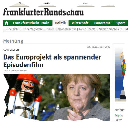 ![]() 03.01.2013 16:15 Das Europrojekt als spannender Episodenfilm Das Jahrbuch 2012/13 ist, wenig überraschend, fast ausschließlich der Finanzkrise gewidmet – einschließlich der fatalen Folgen, die sie für die soziale und demokratische Stabilität in Europa hat. [Quelle: FR] JWD ![]() [..] Die Autoren der im Internet längst etablierten Nachdenkseiten – Albrecht Müller, Wolfgang Lieb und der glasklar analysierende Wirtschaftsjournalist Jens Berger – haben es geschafft, die „Euro-Rettung“ wie einen spannenden Episodenfilm zu erzählen. Nur leider ohne Happy End, aber das ist ja nicht ihre Schuld. [..] Link zum vollständigen Artikel bei ' fr-online.de ' ..hier